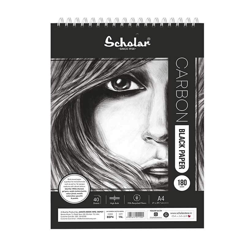 Scholar Carbon Black Paper 180gsm, 40 Sheets, Spiral, A4